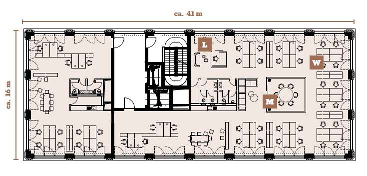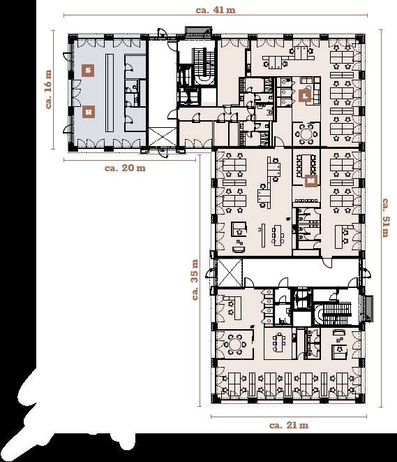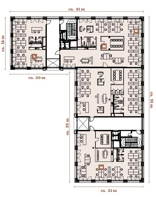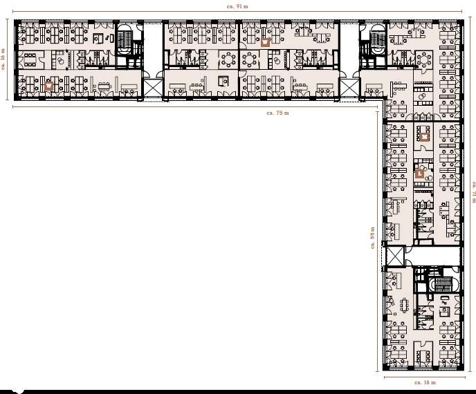 - BESONDERHEITEN: großzügige Grünflächen, zentral gelegene Kantine, Cafés, Duschen u. Umkleiden