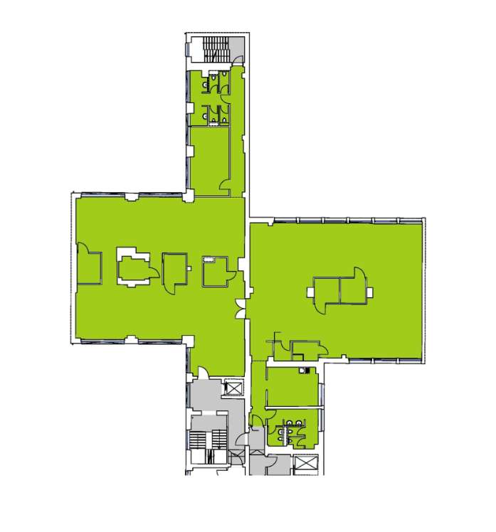 - EDV: passive EDV-und Netzwerkverkabelung und Grundbeleuchtung in Arbeitsbereichen, Flurbereich, Küchen, Sanitär- und Nebenräumen