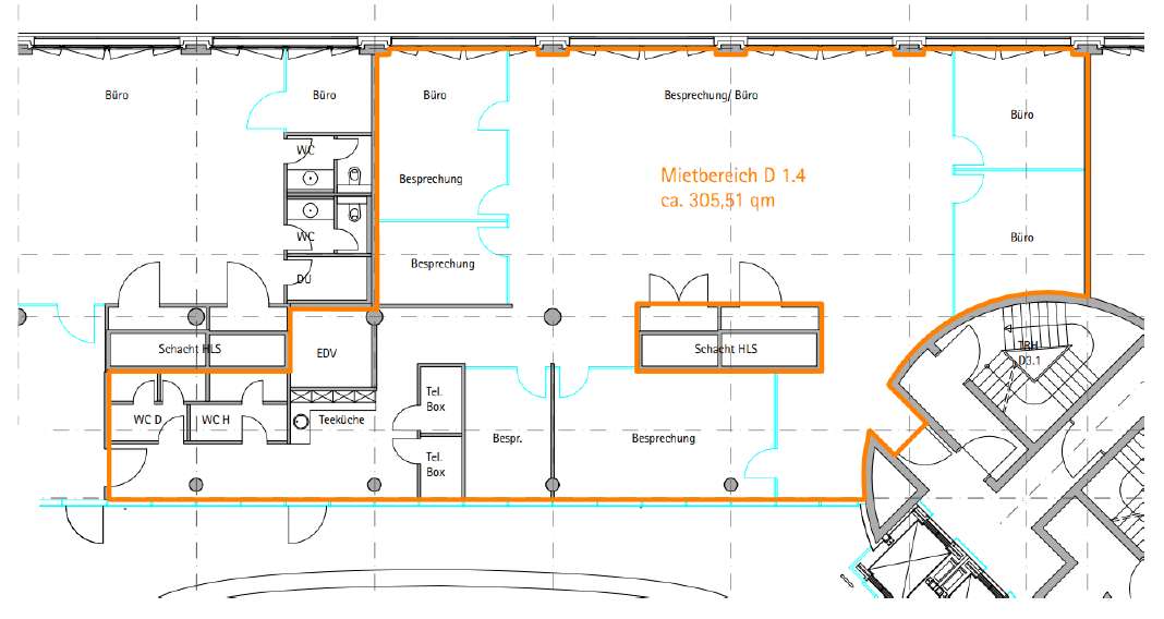 - EDV: EDV-Verkabelung über Doppelboden inkl. Bodentanks, Kupfer- und Glasfaseranschluss