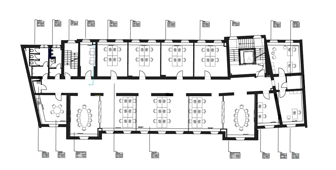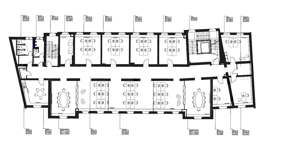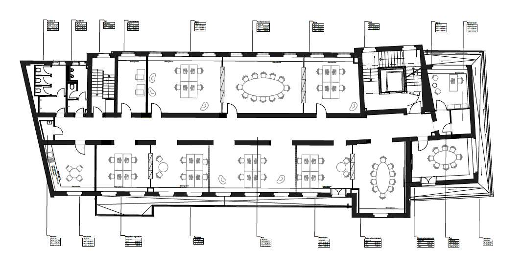 - EDV: CAT 6, Glasfaseranschluss, Akustikdecken mit LED-Beleuchtung