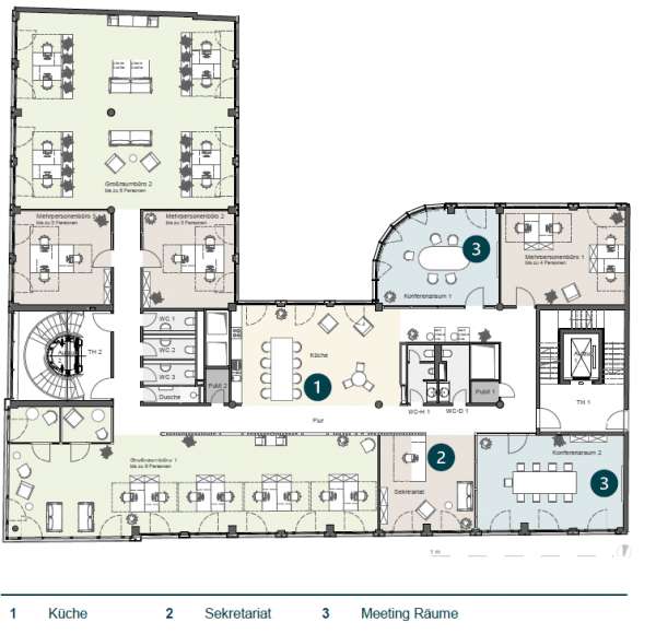 - KLIMATISIERUNG: Kühldeckensegel und Temperierte Lüftungsanlage, außenliegender Sonnenschutz